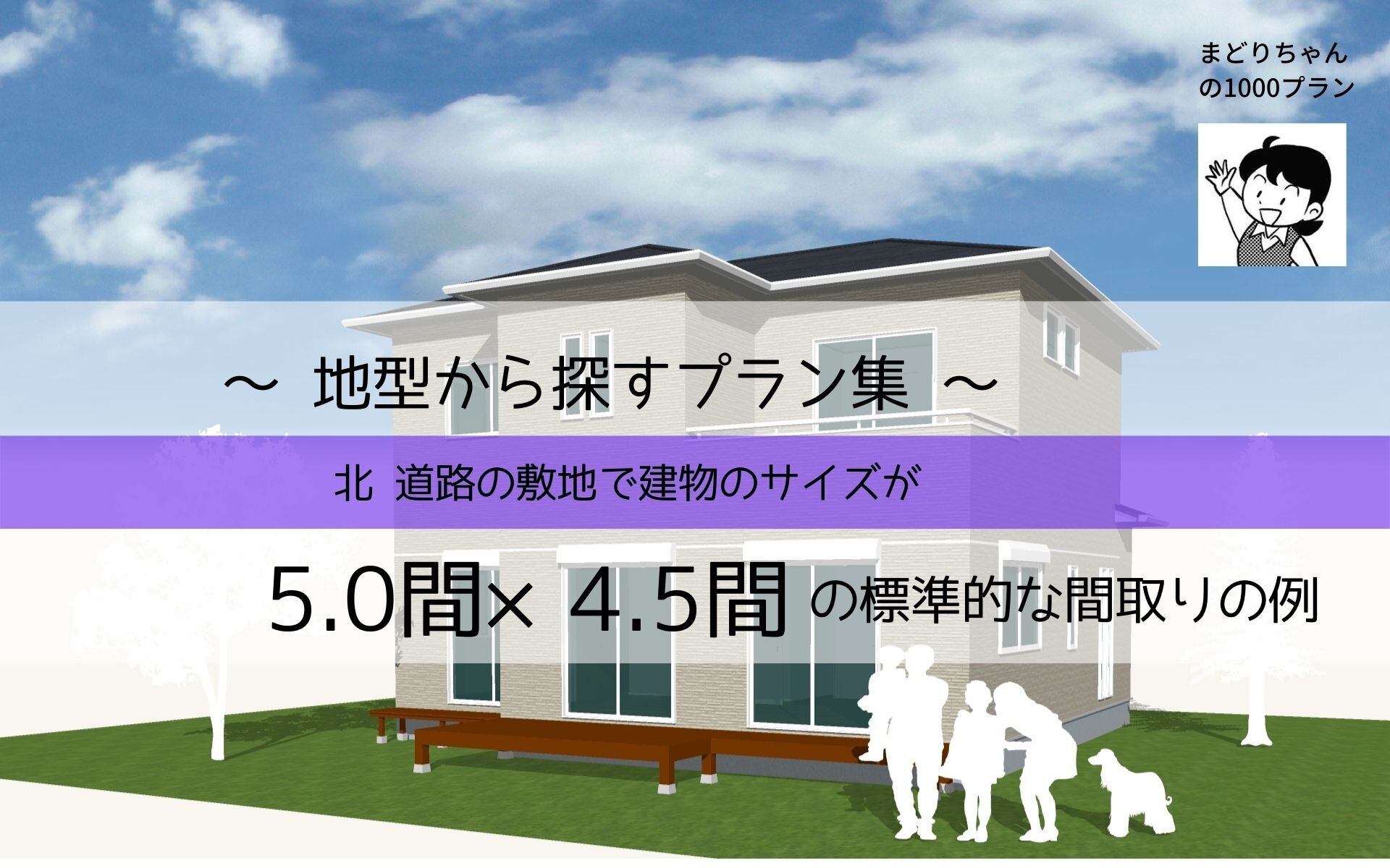 北側に道路がある敷地で、東西方向に5.0間(9.10m)、南北方向に4.5間(8.19m)の建物の大きさが取れる敷地に建てられる間取りの参考例です♪